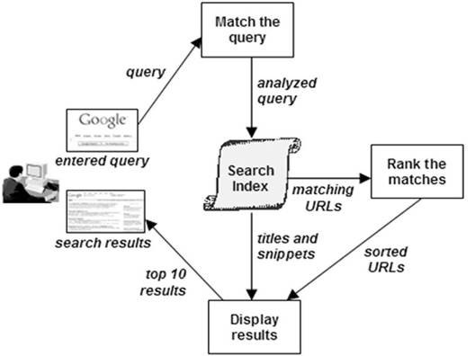 What happens when a searcher[users] enters keywords?